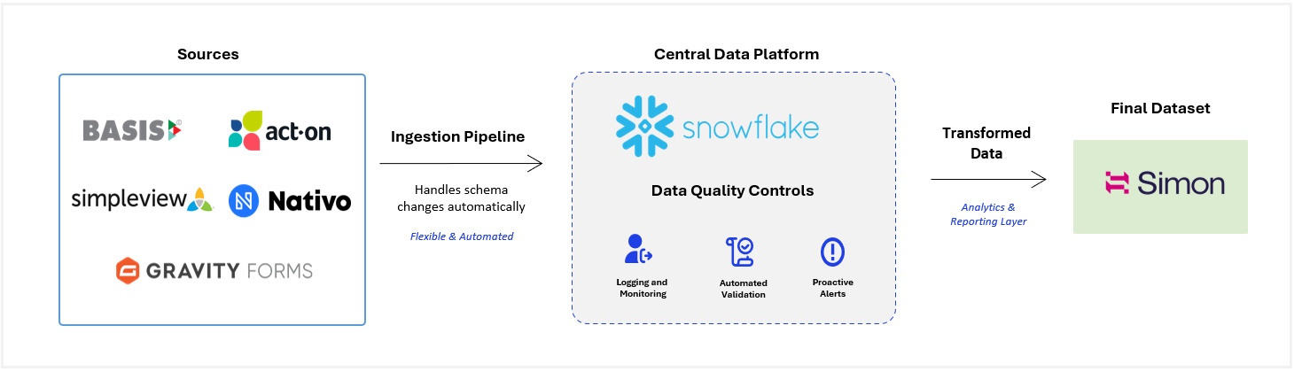- Limited Customer Data Activation: Without a clean, centralized data foundation, the client struggled to activate campaigns in their downstream Customer Data Platform (Simon Data) at scale and in real time.