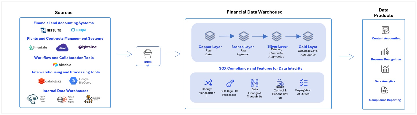 - Clarity on how financial entities such as deal, title, contract, and royalty relate across source systems.